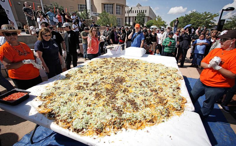 GALLUP, N.M. — Residents in Gallup have set what is being billed as the record for the world's largest Navajo taco, using 150 pieces of fry bread and, of course, more than 30 pounds of green chile.