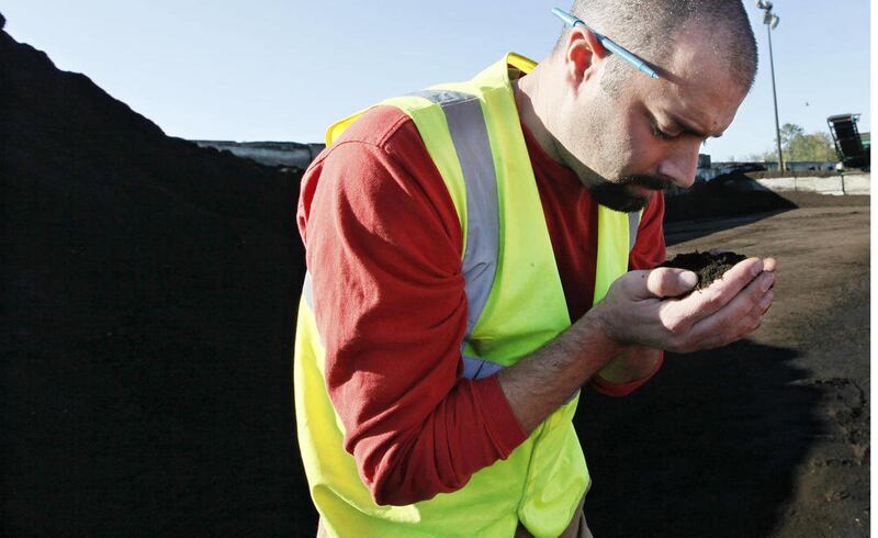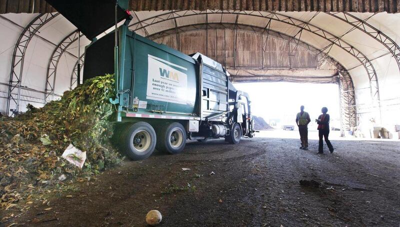 One morning at the Everett plant, a Waste Management driver backed his truck into the enclosed building and unloaded yard clippings he'd picked up from homes in the nearby city of Arlington. Nearby, a truck mists the road to keep down dust.