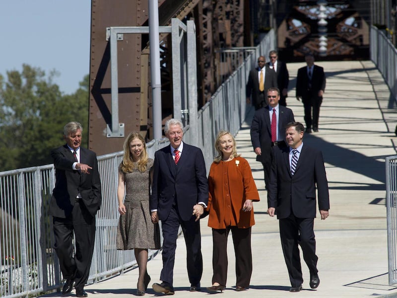 Clinton joined his wife, Secretary of State Hillary Rodham Clinton, and daughter, Chelsea, in Little Rock to dedicate the Clinton Presidential Park Bridge and William E. "Bill" Clark Presidential Park Wetlands Dedication. The ceremony kicked off a weekend of events to mark the 20th anniversary of Clinton's 1991 announcement that he would run for president.