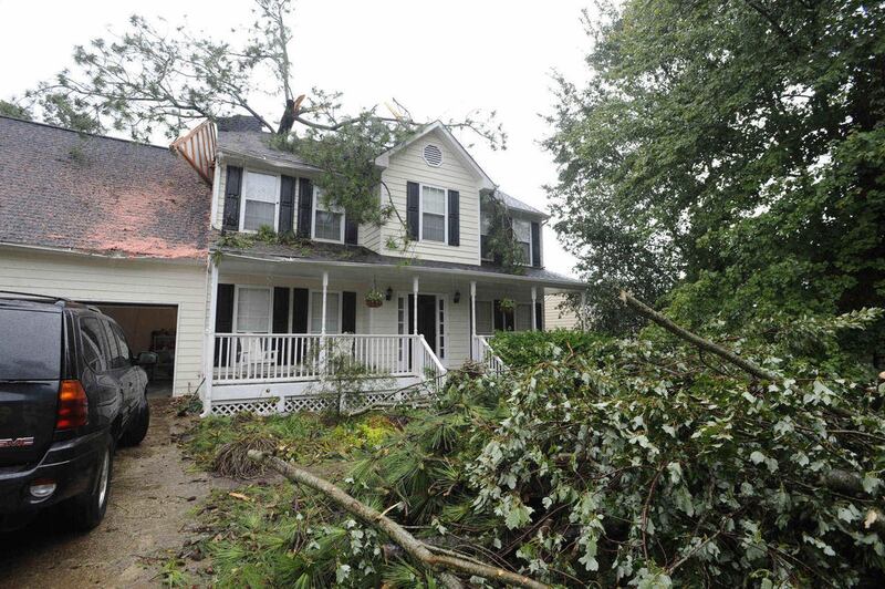 Lt. Jay Baker with the Cherokee County Sheriff's department said the storm toppled trees, snapped power lines and damaged homes in Woodstock. The victim was taken to the hospital after being hit by falling debris but his injuries were not life-threatening, Baker said.