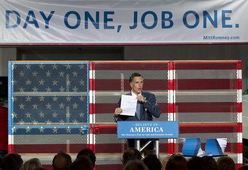NORTH LAS VEGAS, Nev. — Casting himself as America's CEO, Republican presidential hopeful Mitt Romney on Tuesday outlined a sweeping economic plan that would reduce regulations and taxes on companies, sanction China over its currency practices and weaken the clout of labor unions.