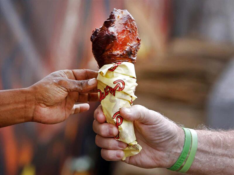 Shall we do the calories? I thought you'd never ask. The WebMDsite lists fried Snickers at 444 calories and 29 grams of fat, and a funnel cake at 760 calories and 44 grams of fat. That ear of corn was positively slimming at about 125 calories.