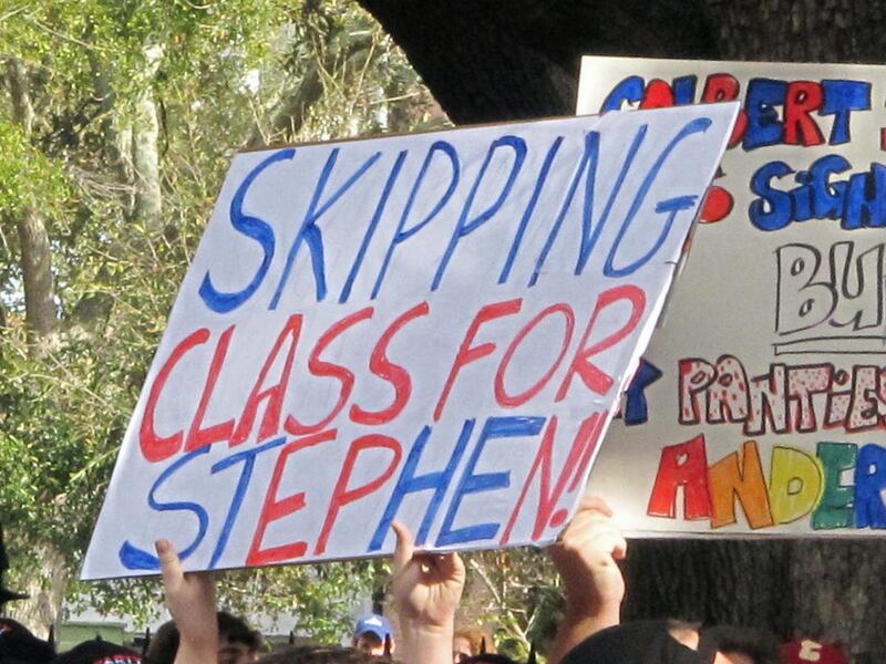 Colbert, who grew up in South Carolina, dubbed the event the "Rock Me Like a Herman Cain South Cain-olina Primary Rally," complete with cheerleaders, choir, band and, of course, Cain himself.