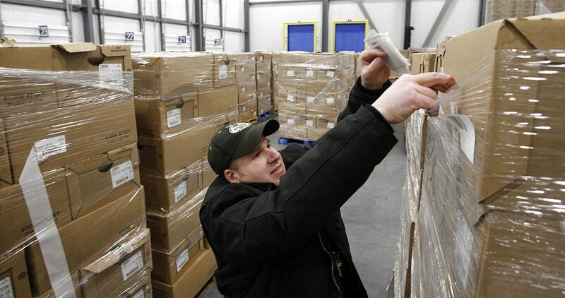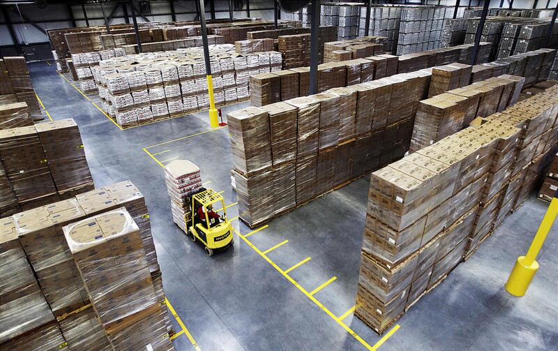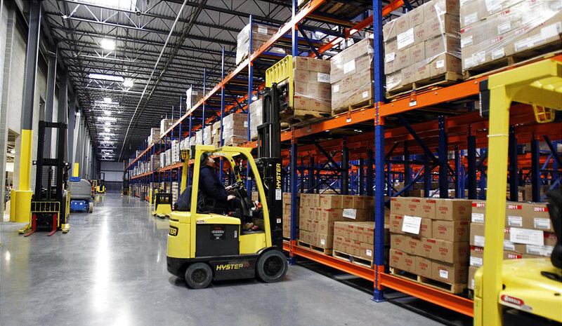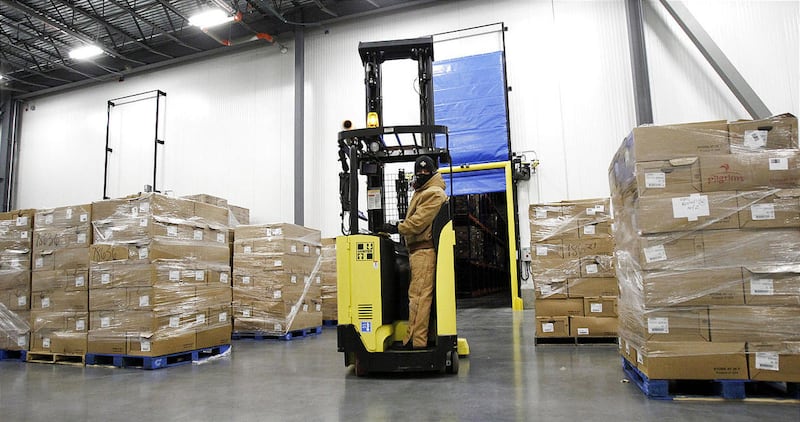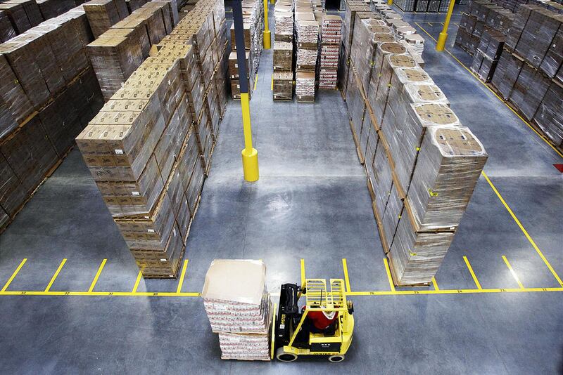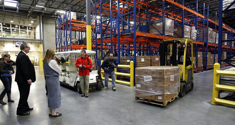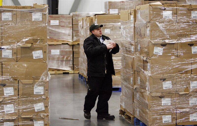About 1,200 to 1,500 pallets move in or out of the facility each day