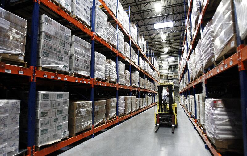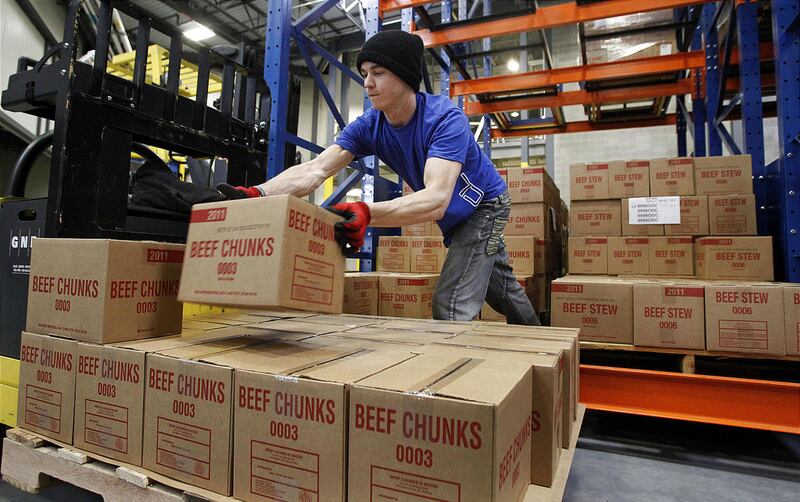 Rows and rows of food and supplies fill the storehouse, which includes a bulk storage area, rack storage and 63,000 square feet of freezer and cooler space. The freezer area is maintained at 10 degrees below zero. "In addition, moisture has been taken out of the air so you don't get ice build up," Humpherys said.