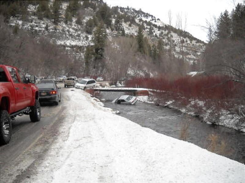 He was coming around one such curve on his snowy trip on U.S. 89 when he saw a minivan wrecked on a bridge, partially overhanging the water. Even though he was already driving a cautious 20 to 25 miles per hour, he thought it best to slow down.