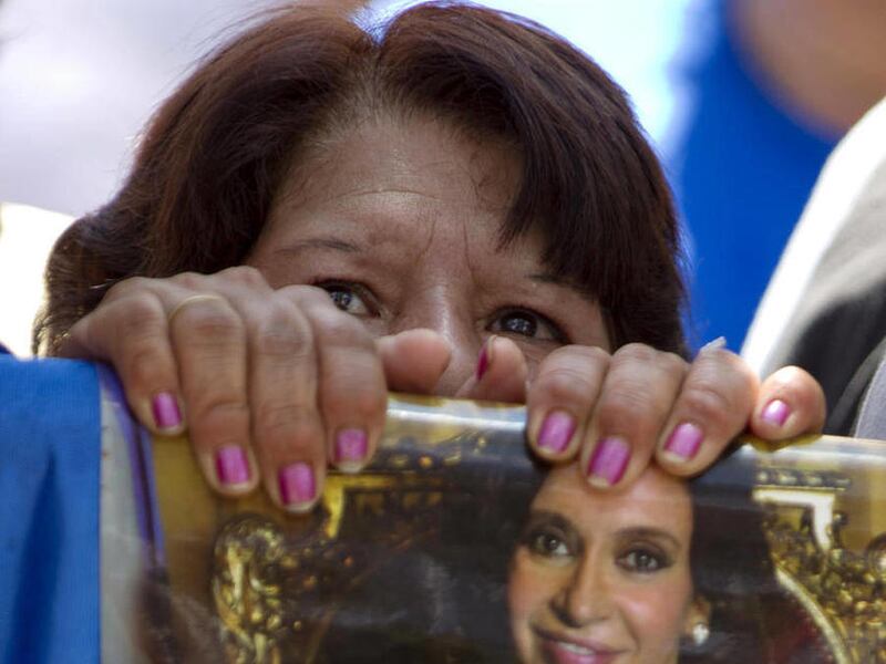Supporters waiting anxiously outside the hospital waved flags, carried handmade signs that said "Be Strong Cristina" and built small shrines to the populist leader, who won re-election with a 54 percent landslide in October. Many carried pictures showing Fernandez and her late husband, former President Nestor Kirchner, who died of a heart attack in 2010.