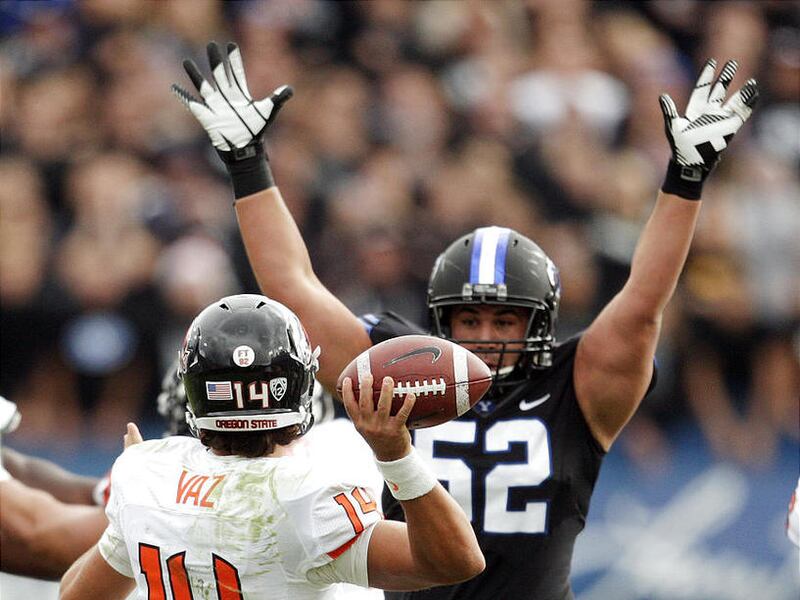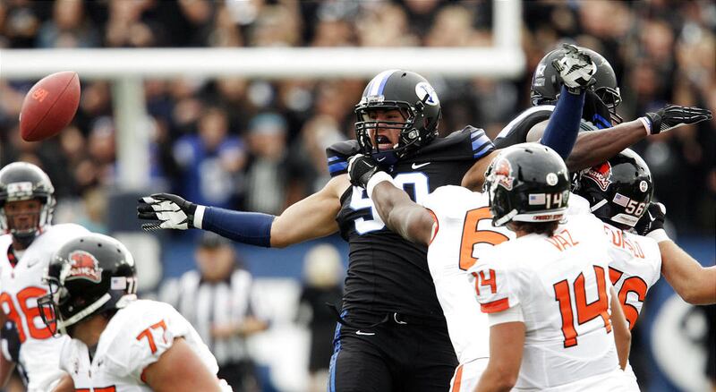 Trailing 28-24, BYU's defense appeared to be on the ropes as the Beavers were on the move and deep in Cougar territory. On third-and-one, OSU was called for a false start immediately followed by a holding call that pushed the Beavers out of field goal range and into third-and-16.