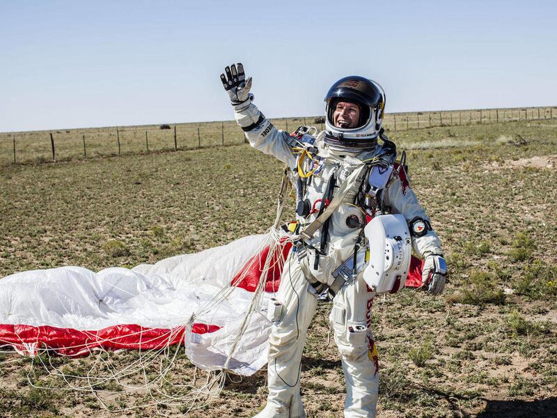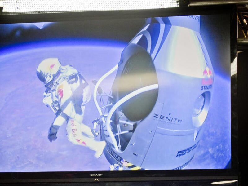 The 43-year-old former Austrian paratrooper with more than 2,500 jumps behind him had taken off early Sunday in a capsule carried by a 55-story ultra-thin helium balloon.
