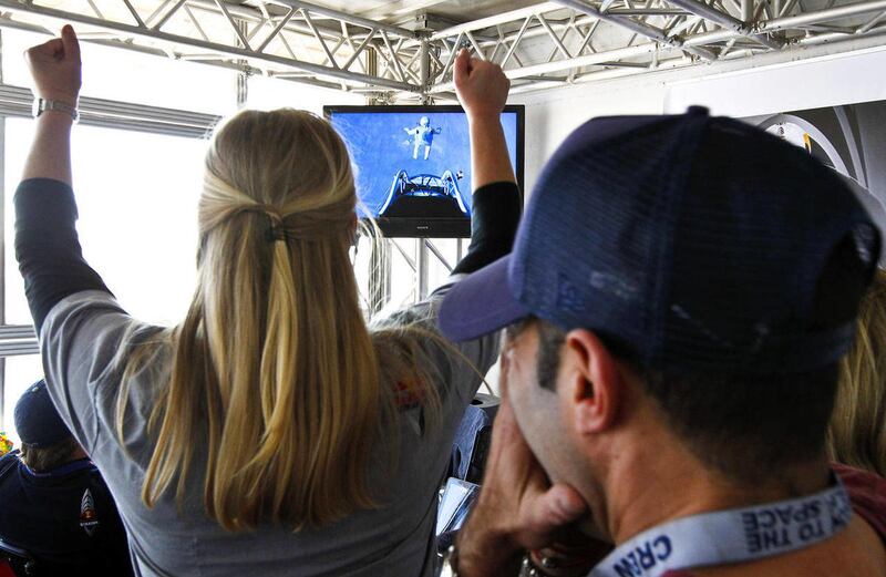 Landing on his feet in the desert, the man known as "Fearless Felix" lifted his arms in victory to the cheers of jubilant friends and spectators who closely followed his descent in a live television feed at the command center