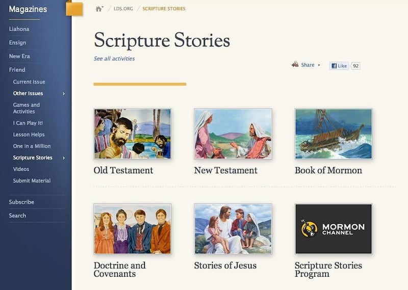 Learning resources on www.lds.org: An archive of multimedia, scripture stories, scripture reading charts, cutout scripture heroes and other extras sorted by gospel topic.