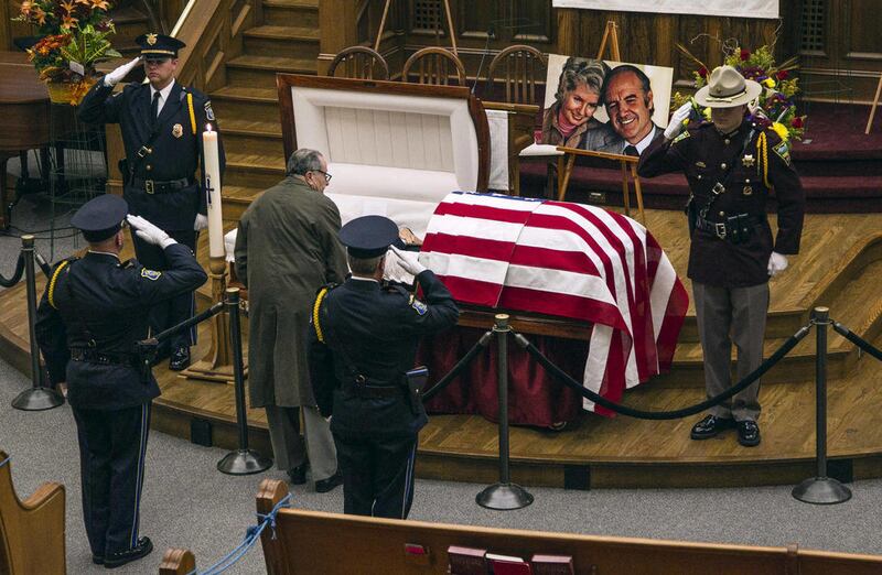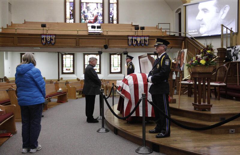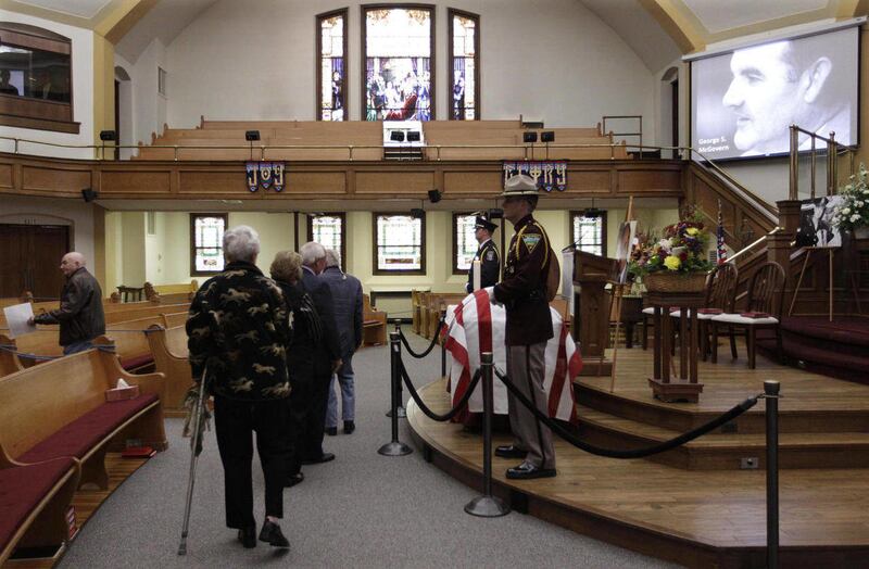 SIOUX FALLS, S.D. — Friends, family and former colleagues paused before the flag-draped casket of former U.S. Sen. George McGovern on Thursday to pay tribute to the liberal Democrat who ran for president against Richard Nixon and lost and who later became a champion in the fight against global hunger.