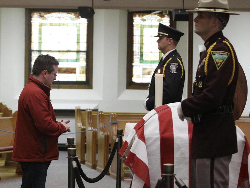 About two dozen people lined up outside the First United Methodist Church in Sioux Falls before the start of the public viewing and prayer service for McGovern, who died Sunday at age 90. His funeral is Friday.