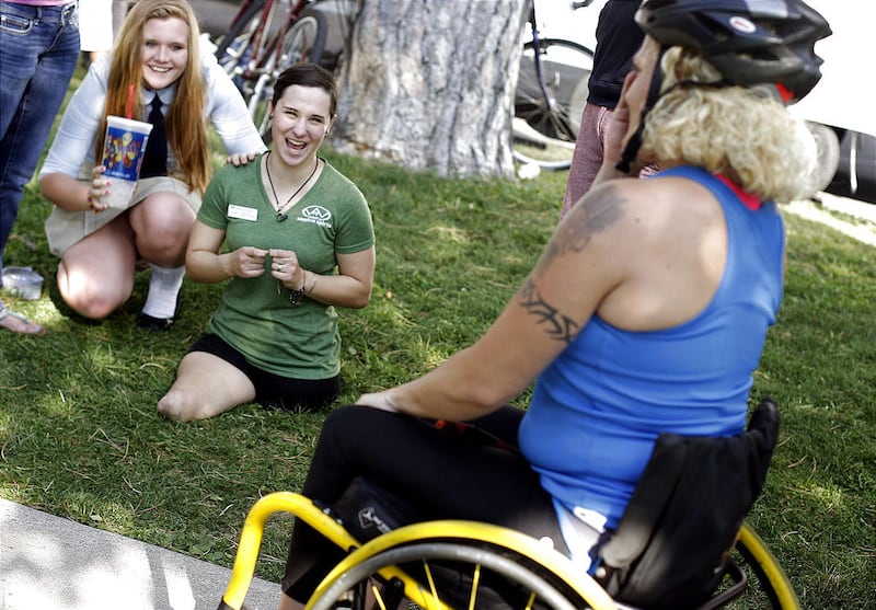 There are still moments of wistfulness. One day she was in Liberty Park, training hand cyclists, when she spied a four-leaf clover. She made a wish that her legs would grow back. "But they didn't," she sighs. "I would give anything to be able to stand up and walk again. I miss that."