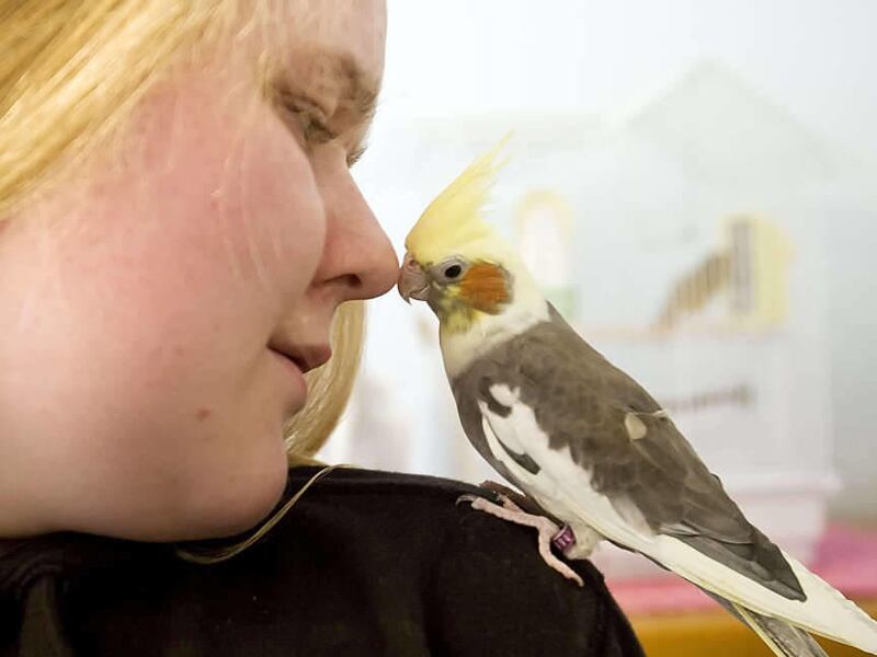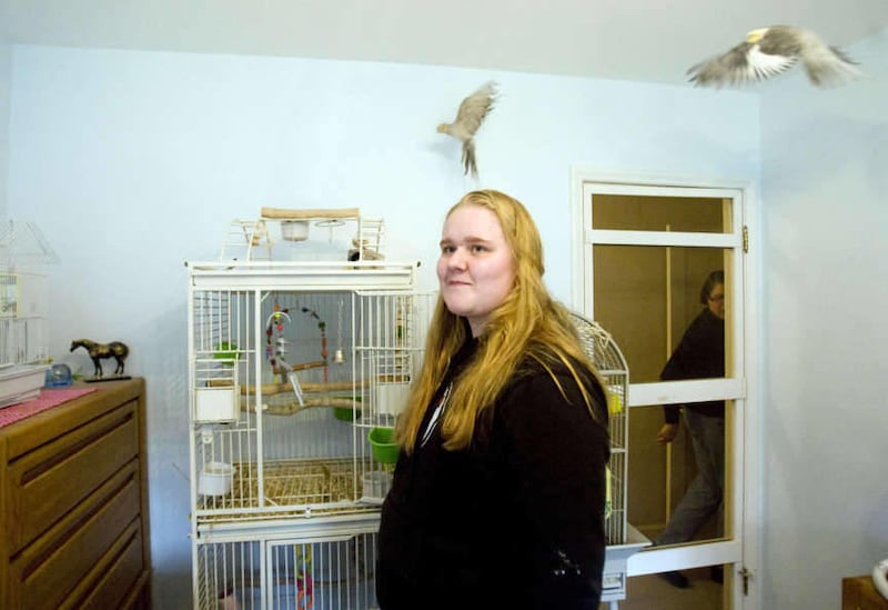 “This has been such a blessing for Drue,” says Kim Sheffield, her eyes brimming with tears as she watches her 17-year-old daughter care for nearly two dozen parakeets and cockatiels in her bedroom after school. “Since she has a hard time bonding with people, she really needed something to love and care about. What we never expected, though, is how the birds would love her back.”