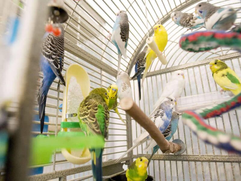 Unlatching a cage filled with squawking blue, green and yellow parakeets, she calls for “Charlie” and holds out her index finger. Charlie swoops out the door, circles the room once, then glides to her finger, where he perches and chirps happily.