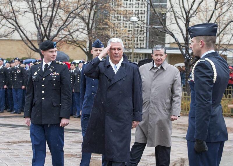 "He has a great military background both in the German air force and here in the U.S. He learned how to fly airplanes in the German air force, and then came here for his pilot training, so he has a military background to go with his great service to the church and to his country and all of us now."
