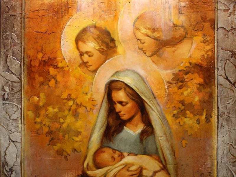 This past November, independent fine art professional Annie Henrie painted "Love's Pure Light," capturing the beauty of Mary holding baby Jesus with angels watching over them. She used mixed medias such as acrylic and oil paint, charcoal pencil and gold leaf to create her piece.