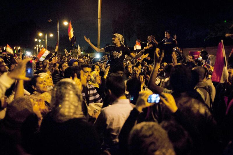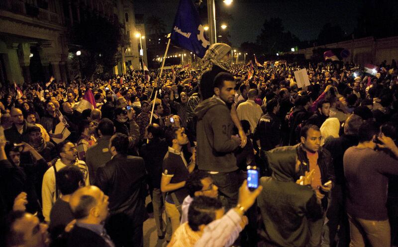 Crowds around the capital and in the coastal city of Alexandria were still swelling several hours after nightfall. The large turnout signaled sustained momentum for the opposition, which brought out at least 200,000 protesters to Cairo's Tahrir Square a week ago and a comparable number on Friday. They are demanding the Morsi rescind decrees that placed him above judicial oversight.