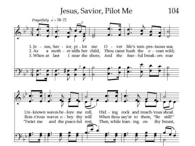 In 1871, Edward Hopper was pastor of a congregation of sailors at the Mariner’s Church at New York Harbor. He used nautical imagery to write the song, “Jesus, Savior, Pilot Me,” hymn No. 104.