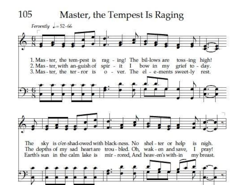 In the October 1984 general conference, Elder Howard W. Hunter, then a member of the Quorum of the Twelve, told the story of Mary Ann Baker, who wrote the text for hymn No. 105, “Master, the Tempest is Raging.”