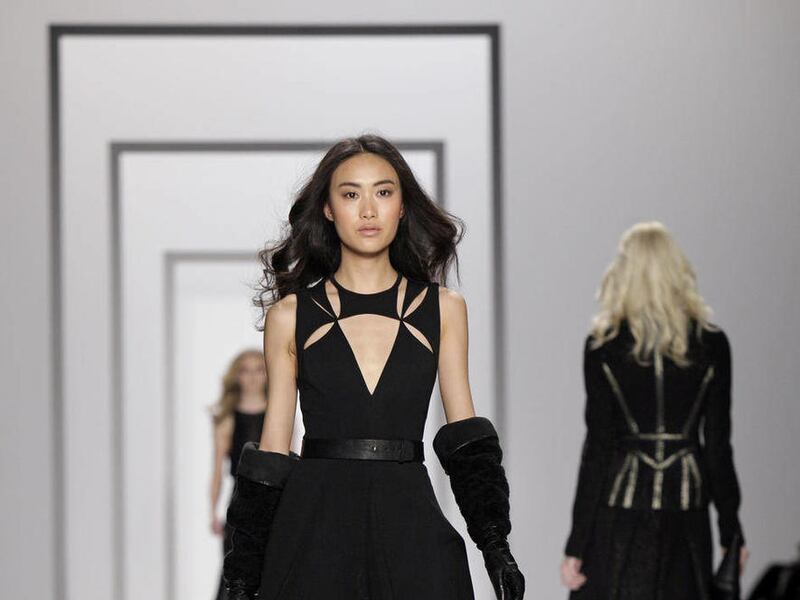NEW YORK — Gilles Mendel moved his New York Fashion Week catwalk from the smaller venues he's used in previous seasons to the largest space the Lincoln Center tents had to offer him — and he filled it with swank.