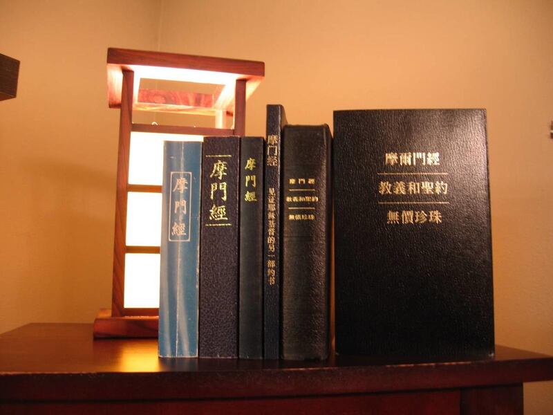 The first edition of the Book of Mormon in traditional Chinese characters had a gold embossed Moroni on the black cover.
