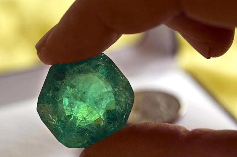 One of the uncut emeralds weighs more than 1,200 carats. The 64-carat cut emerald is known as the "Carolina Emperor."
