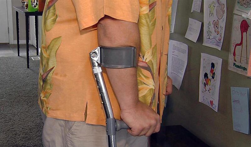 He's had bone grafts to heal his leg; he has a plate that holds the front of his pelvis together and a lug screw holding the back. He had first to learn to stand again, and then to walk. After months of rehab, he's beginning to walk a little on his own without crutches.