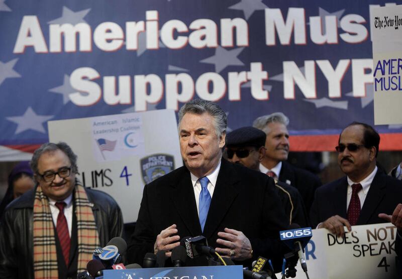 He said the department should be a model for other departments around the country. While King was speaking, a heckler yelled from across the plaza: "American Muslims do not support brutality."