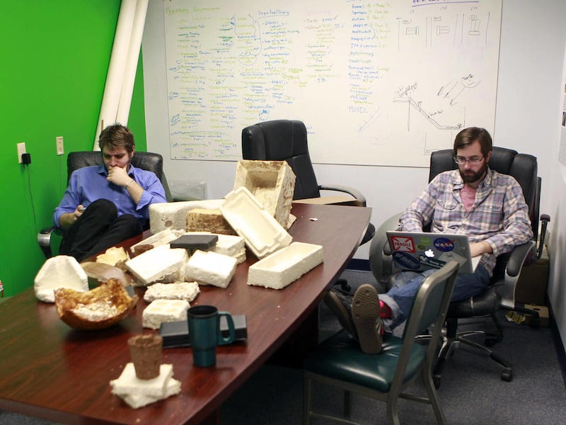 Ecovative recently announced deal with Sealed Air to accelerate production, sales and distribution, and Bayer and McIntyre are starting to branch out beyond packaging. The young visionaries — Bayer is 26, McIntyre, 27 — talk about roofing material that can repair itself and a mycelium alternative to plastic office furniture. They already have contracts to work on footwear and material for car bumpers.