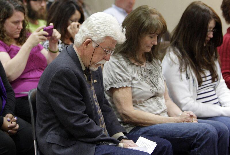 Tom Hayes told those at the rally that he saw the Jan. 4 police operation from his house through a parking lot. He said that as officers put on gear in anticipation of the operation, they "gave high fives ... like before a football game — let's go get 'em-type. It was disgusting. It's disgusting."