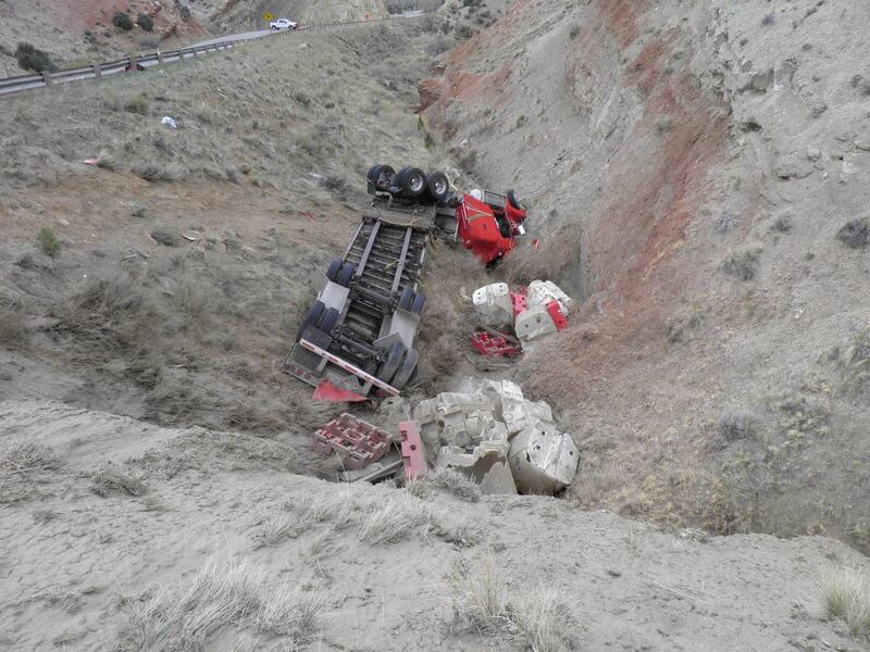 The truck and containers have been removed from the ravine, and hazmat crews from Envirocare will now remove and replace soil that became saturated with the material, Winward said.