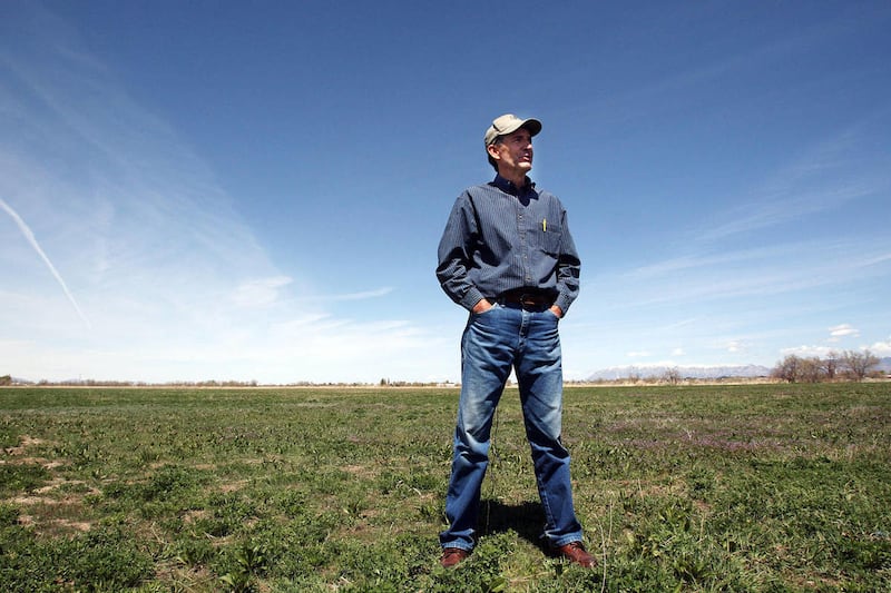 Standing in the middle of the hayfield his family has owned for more than 50 years, Thayne points out the location where he plans to build a pair of private ski lakes, divided by 24 to 28 homes, each with a private dock.