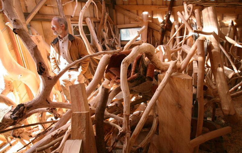 Fellow woodcarver John Manthei said he's been in a car with Marshall when his friend will suddenly slam on the brakes and run into the forest. He's on the hunt after spotting a needed ingredient for one of his elaborate furniture sculptures.