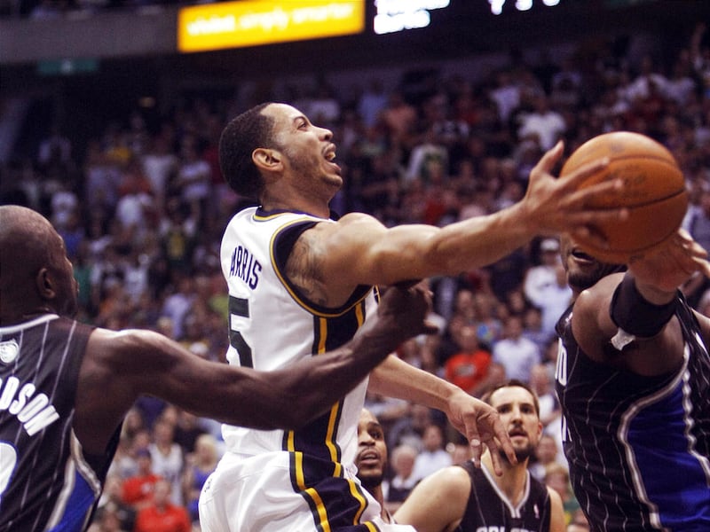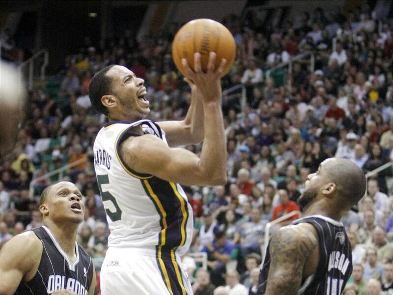 GUARDS: It certainly wasn't the most consistent effort from start to finish for Devin Harris and Gordon Hayward, but each played a huge role in saving the Jazz's victory. Harris provided one of the game's biggest plays when he blocked Jameer Nelson's shot at the end of the fourth quarter to send the game into overtime. His 3-pointer with 37.9 seconds remaining sealed it for Utah. Hayward, who has played spectacularly for much of the month, hit a 3-pointer to make it 110-105 with 1:38 left in the game. That shot helped make up for his six turnovers. Nelson led Orlando with 23 points. J.J. Redick hit a key 3-pointer during Orlando's 16-0 run in the third quarter, but didn't score in the fourth quarter or overtime.