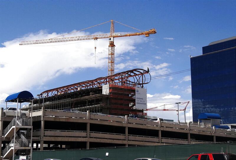 Cranes bringing the seven-story project out of the ground are the most visible reminder on the Provo skyline of a larger downtown renovation, which includes the soon-to-be opened Utah Valley Convention Center across the street to the north, and the Provo City Center Temple project by The Church of Jesus Christ of Latter-day Saints.