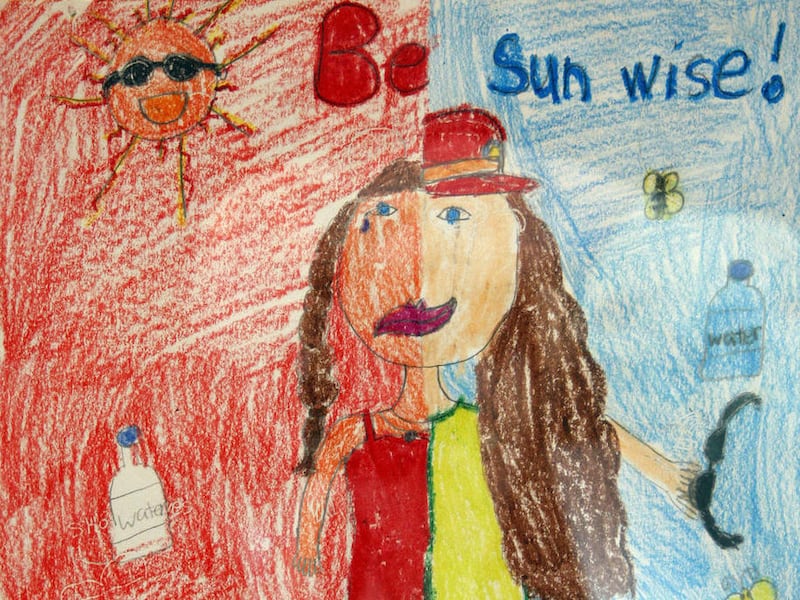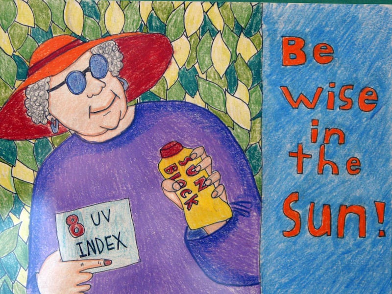 "It's someone putting on sunscreen, with a hat and a long-sleeved shirt, in the shade," the 6-year-old Rowland Hall kindergartener clarified. Teter's drawing was one of 27 local finalists in the national SunWise with SHADE poster contest, which is sponsored by the U.S. Environmental Protection Agency.