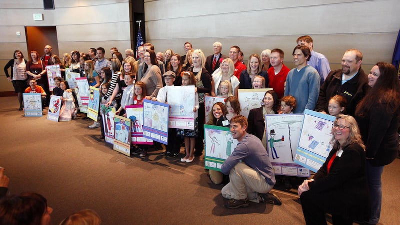 Lt. Gov. Greg Bell, melanoma survivor MaryAnn Gerber and others spoke to the artist finalists and their families Friday, during an awards ceremony held at the Huntsman Cancer Institute. Bell said people used to think it was healthy to "baste themselves like turkeys" in the sun.