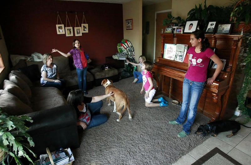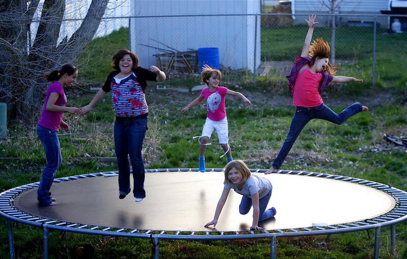 In warm weather you can nearly always see a "giggle of girls" riding bikes or skipping rope on the concrete. The little Shodas, Harmony now 7, and Melody, 3, love to play with the Uribe clan: Analisa, now 14, Miranda, 13, Emma, 11, and Eva, 8.