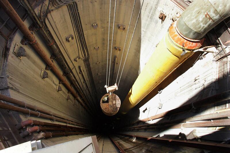 The intake itself is like an upside-down concrete funnel made by pouring 10,000 yards of concrete through a 368-foot-long pipe into a big hole in the ground. Workers never touch the water and instead use sonar and a mini submarine to come within an inch of their target in 350-foot-deep water.