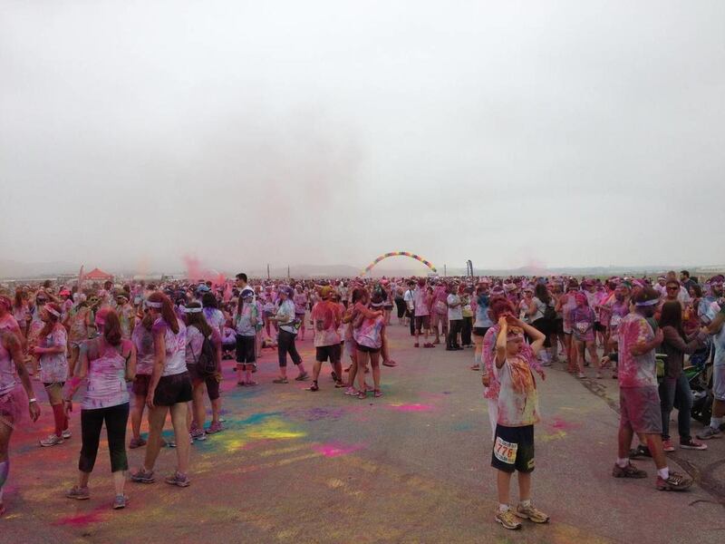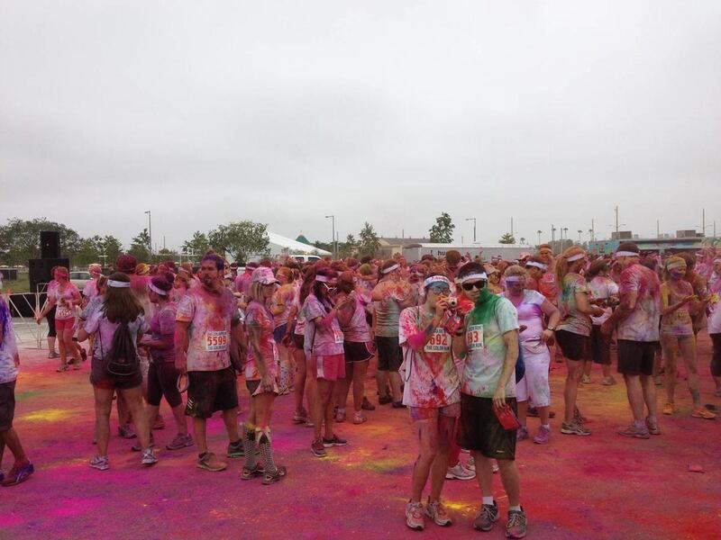 Everyone received a color packet in their bag — and a white T-shirt — and at the end of the race, there are color throws every 20 minutes or so. They had music, dancing, snacks and an air blaster that takes the majority of the non-toxic color off of your skin and clothes. (Although, if you sweat, it seems to stick a little longer.)