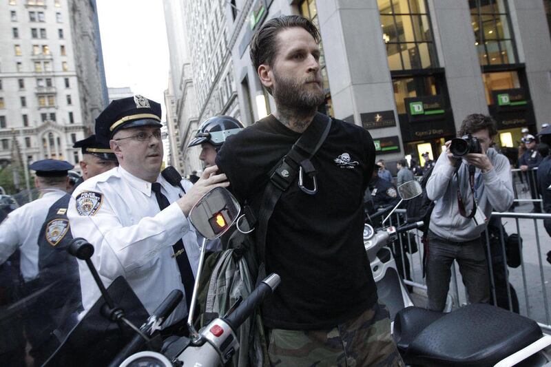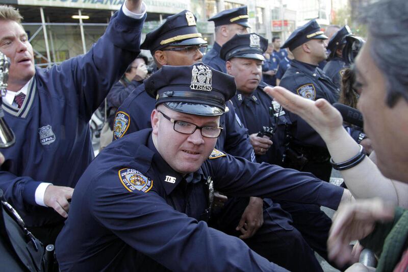 Earlier in the day, activists spread out over the city with Occupy members leading a charge against financial institutions. They faced police lined up in front of Bank of America on West 42nd Street and chanted: "Bank of America, bad for America!"