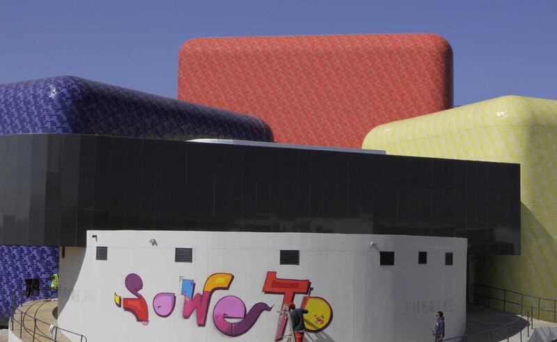 The new theater resembles a giant child's toy with walls clad in bright blue, yellow and red tiles and a tent-like entrance covered in an awning of white canvass. Sophisticated and modern, it contrasts sharply with the community halls where plays in Soweto were once performed.