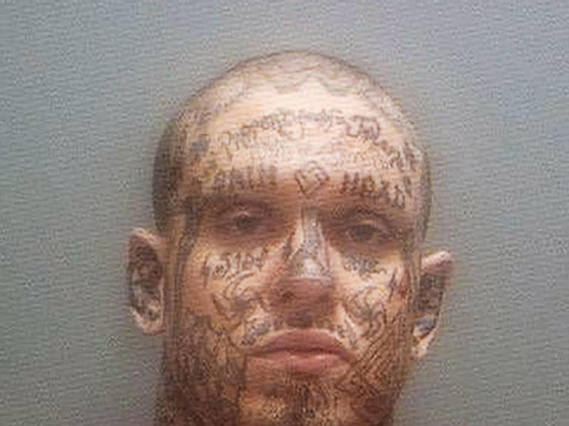 In a 2001 booking photo, Allgier had no visible tattoos on his face, a striking contrast to his 2007 booking mug which shows his face completely covered with tattoos. It's unclear where he got those tattoos. Part of his ongoing court battles have been over whether to have his tattoos covered during trial. A judge ruled against it.
