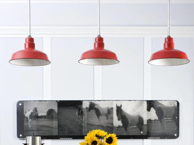 Quinn agrees: We notice hanging lights in relation to the heads of people standing in a room. Lights that hang within a few inches of the heads of your tallest guests will make even a very tall room feel warm and welcoming.