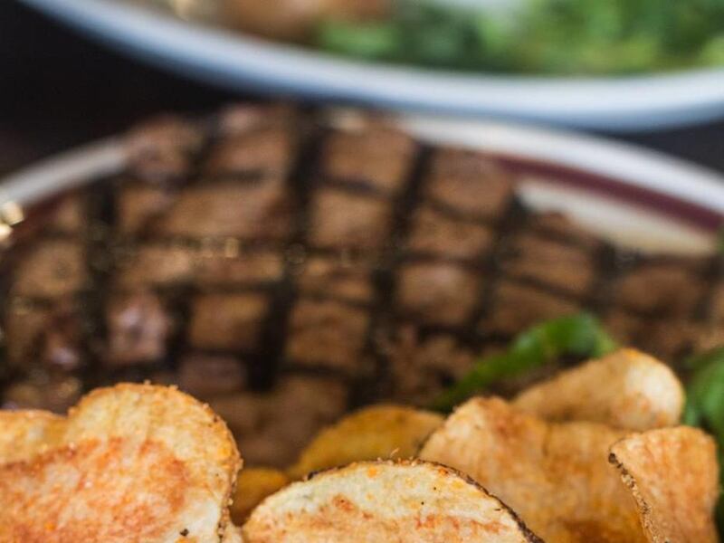 Our other entree was a New York steak, which at $14 made for an excellent meal. With the steak, one of the options for sides included “Rock Chips,” which are homemade potato chips seasoned with Clay’s own secret recipe — a recipe he swore he would never give up. The meat was tender and well cooked and had honest-to-goodness grill marks on it, giving it that true backyard BBQ taste.