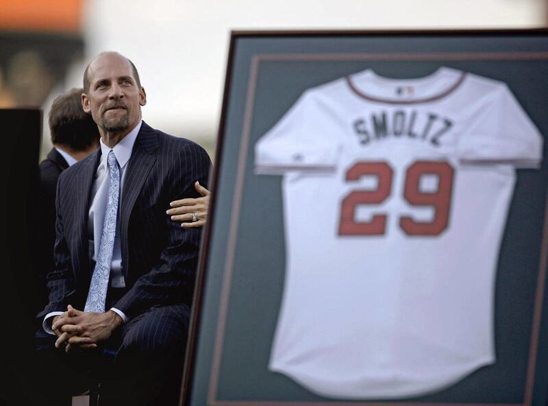 Smoltz was inducted into the Braves' Hall of Fame and the team retired his number before Friday night's game against Toronto.