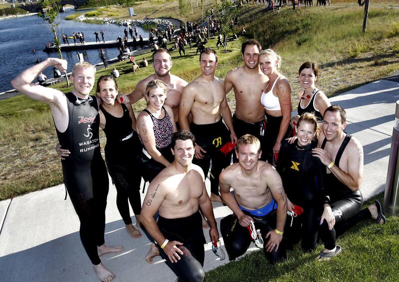 The whole thing began with a bet started by the groom's older brother, Jesse, back when Colby and Shannon were just dating. The brothers wanted to get in shape. Friends joined in and the triathlon became the focus of the training.
