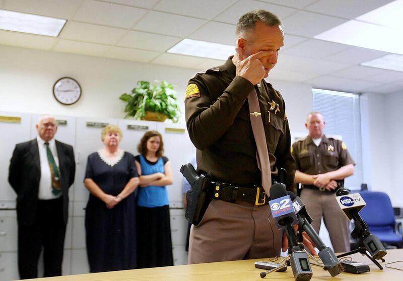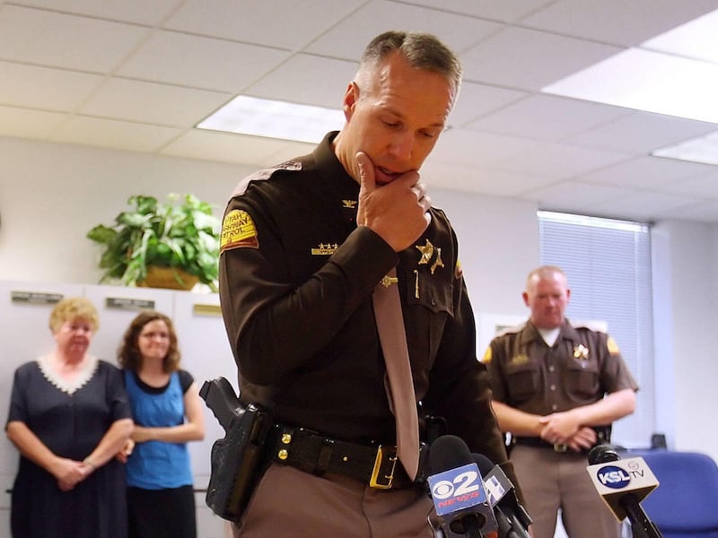 "It is with a great deal of sorrow that we are here tonight to announce this passing," the sheriff said during a late-night news conference Saturday in Murray. "This trooper died in the line of duty while engaged in a heroic effort, the rescue of two individuals."